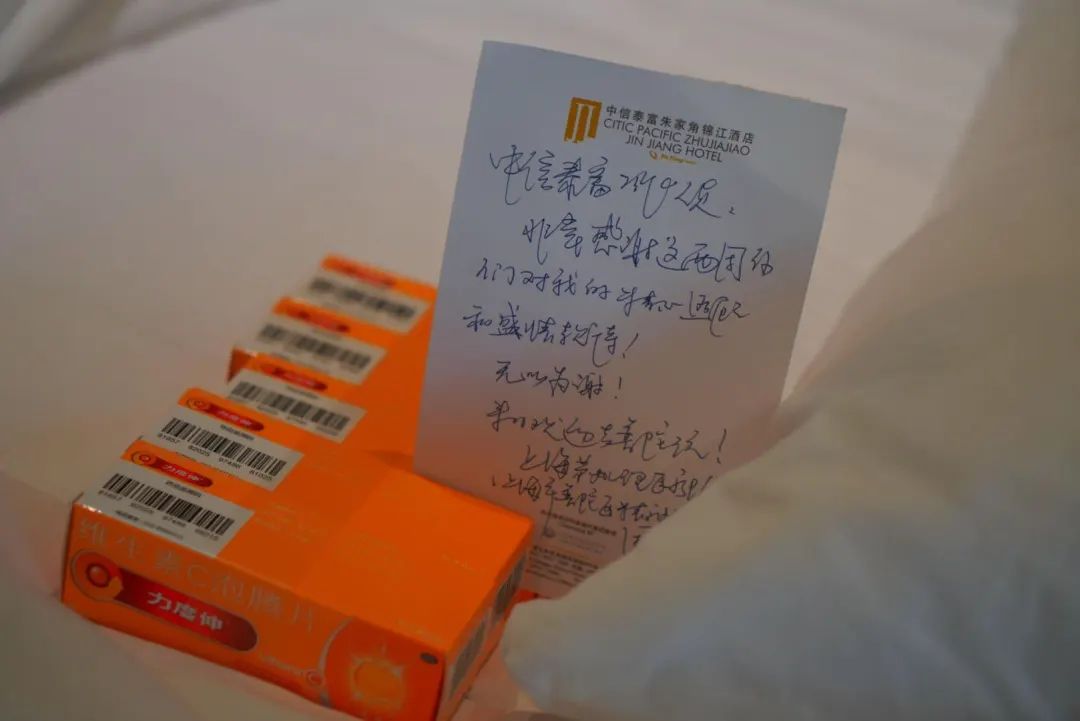 疫情发生之前,王欢和她的同学们在各自的岗位上认真工作实习;疫情严重时,他们自觉遵守国家、学校与酒店的相关规定在宿舍进行隔离与休假;疫情趋缓时,他们又陪同援鄂返沪医疗队度过了一段难忘的时光,受益匪浅。据王欢介绍,他们的工作主要是每天为援鄂返沪医护人员送餐四次:上午七点的早餐,九点半的水果,十一点半的午餐,下午五点半的晚餐。每次送餐都要穿厚重隔离服,戴头套、口罩、手套和脚套,推着手推车,把食物放进保温箱,然后送到医护人员的房间门口。就这样,四位实习学生与酒店工作人员一道和这群凯旋的“白衣天使”们朝夕相处了一个多月。叶俊和周杨说:“我们在为医疗队提供食物时严格做好了个人防护和消毒工作,没有一丝懈怠。而且为他们提供食物时我们很用心也很自豪。”周安全说:“有医生过生日时,我们会给他们做蛋糕、准备惊喜,在收到他们的感谢信时也会感到感动和骄傲。”