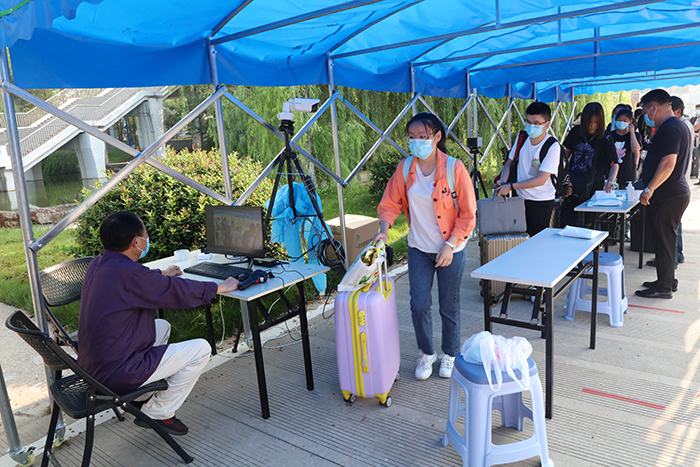 笔者了解到,本着一切为了学生的原则,学校还与蚌埠市公交公司协商,临时开通了“半岛官方网站_半岛(中国)股份有限公司,公交专线”,便于龙湖校区同学们从蚌埠南站返校。笔者还看到,在两校区门口,公安民警、校保卫处工作人员认真维持秩序,为返校同学守护平安。在临时观察点,校医院医护人员认真细致观察,加强对同学的健康监测及医学处置。在学生报到点,各学院都撑起了遮阳帐篷,为排队报到的学子们挡住烈日的阳光,送去清凉的问候……