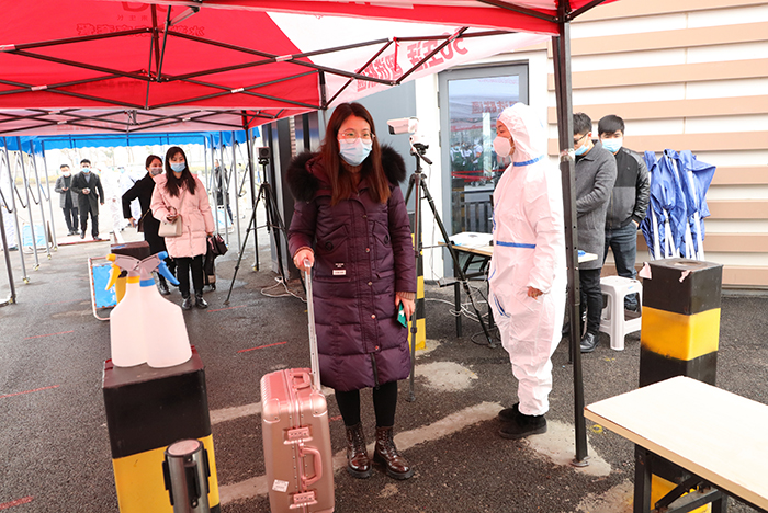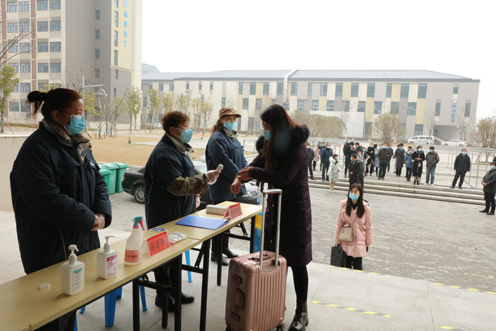 在学生进校测量体温环节,医务人员发现体温异常学生后,立即指引该生径直到临时医疗观察点,由应急处置医务人员进行体温复测和调查。如复测体温仍异常,医务人员立即联系定点医院,安排专车送院就诊,同时报告上级领导,相关工作人员对现场学生进行信息登记,对物品与环境进行彻底消毒,对密切接触者进行隔离,并通知学生家长。