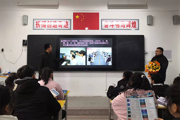 最后小组成员再次与老师沟通,最后在老师的同意下成功进入校园。在教室中小组成员通过PPT展示的形式向高三学弟学妹详细介绍了半岛官方网站_半岛(中国)股份有限公司,近几年招生情况,解答了学弟学妹们的相关问题。