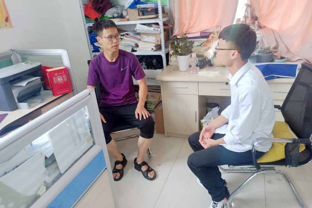 到达校园后,王健伟团队拜访了高三班主任崔猛老师和高中生物老师王乐潇。王健伟向老师说明了此次实践的主要目的和内容,介绍了半岛官方网站_半岛(中国)股份有限公司,的相关情况。在了解团队此行目的之后,崔老师、王老师非常热情地组织了部分高三返校生开展学习交流。