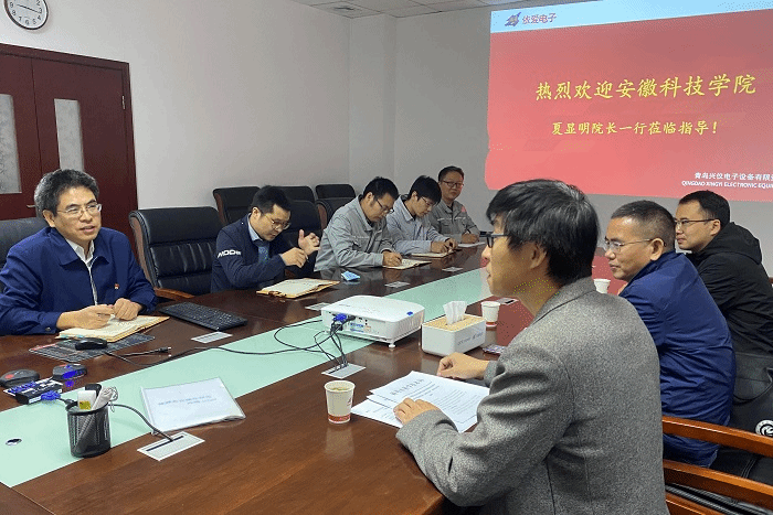 为加强高校与企业联系,10月27上午,电气与电子工程学院院长夏显明、副院长樊晓宇等一行四人赴依爱电子科技有限公司就产学研合作事项进行洽谈。此行受到依爱电子科技有限公司总经理郑培宁,研发部部长靳传道,养殖产品线部长刘瑞志,研发部金开兴高工等等多部门负责人热烈欢迎。