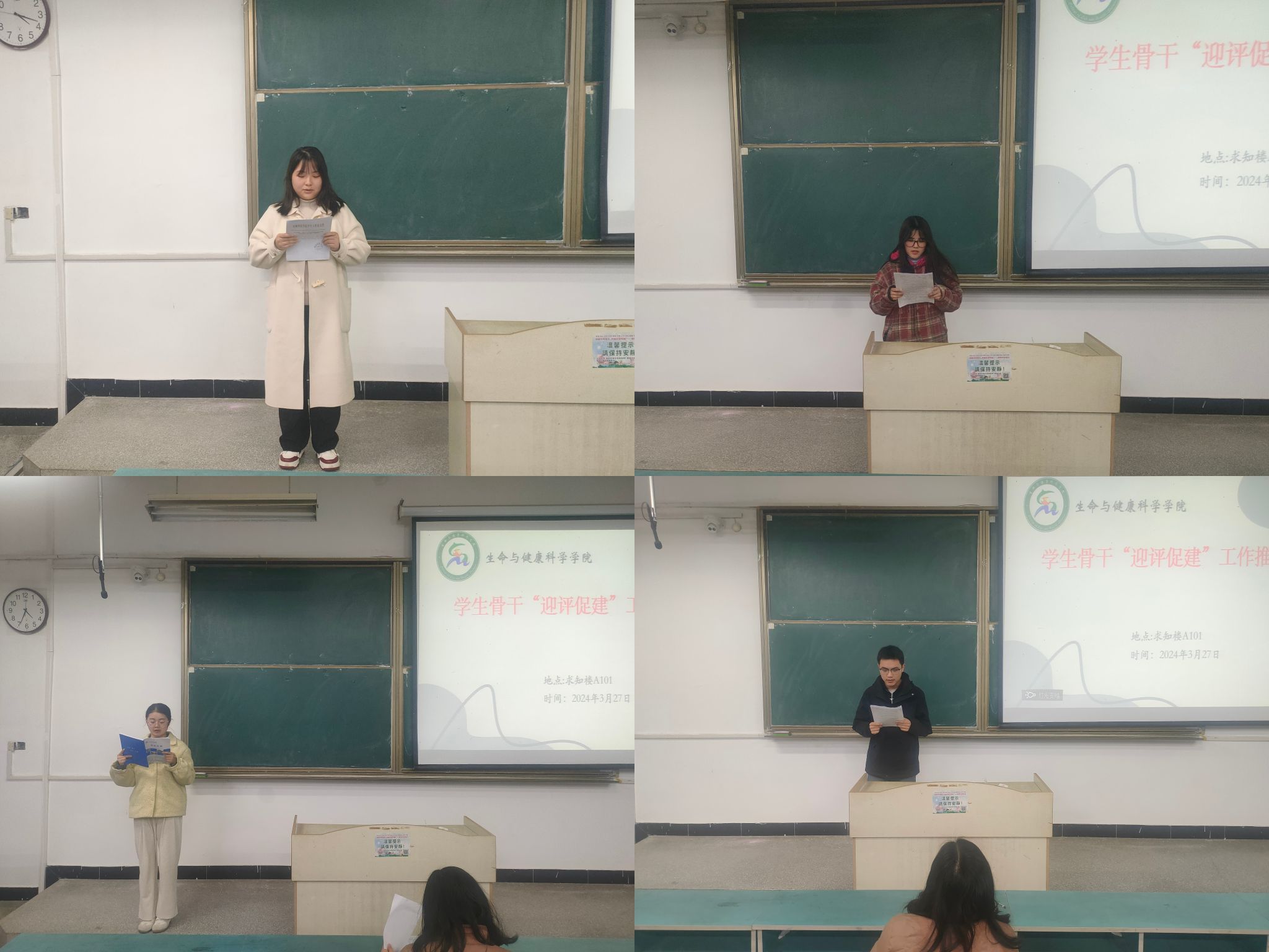 为进一步深化本科教育教学审核评估宣传教育,加强学风建设,营造良好氛围,3月27日下午,生命与健康科学学院在求知楼A101教室召开学生骨干“迎评促建”工作推进会议。学院党政领导,辅导员,各班级部分班干及学生团体主要负责人等参加会议,会议由正科级辅导员刘国祥主持。