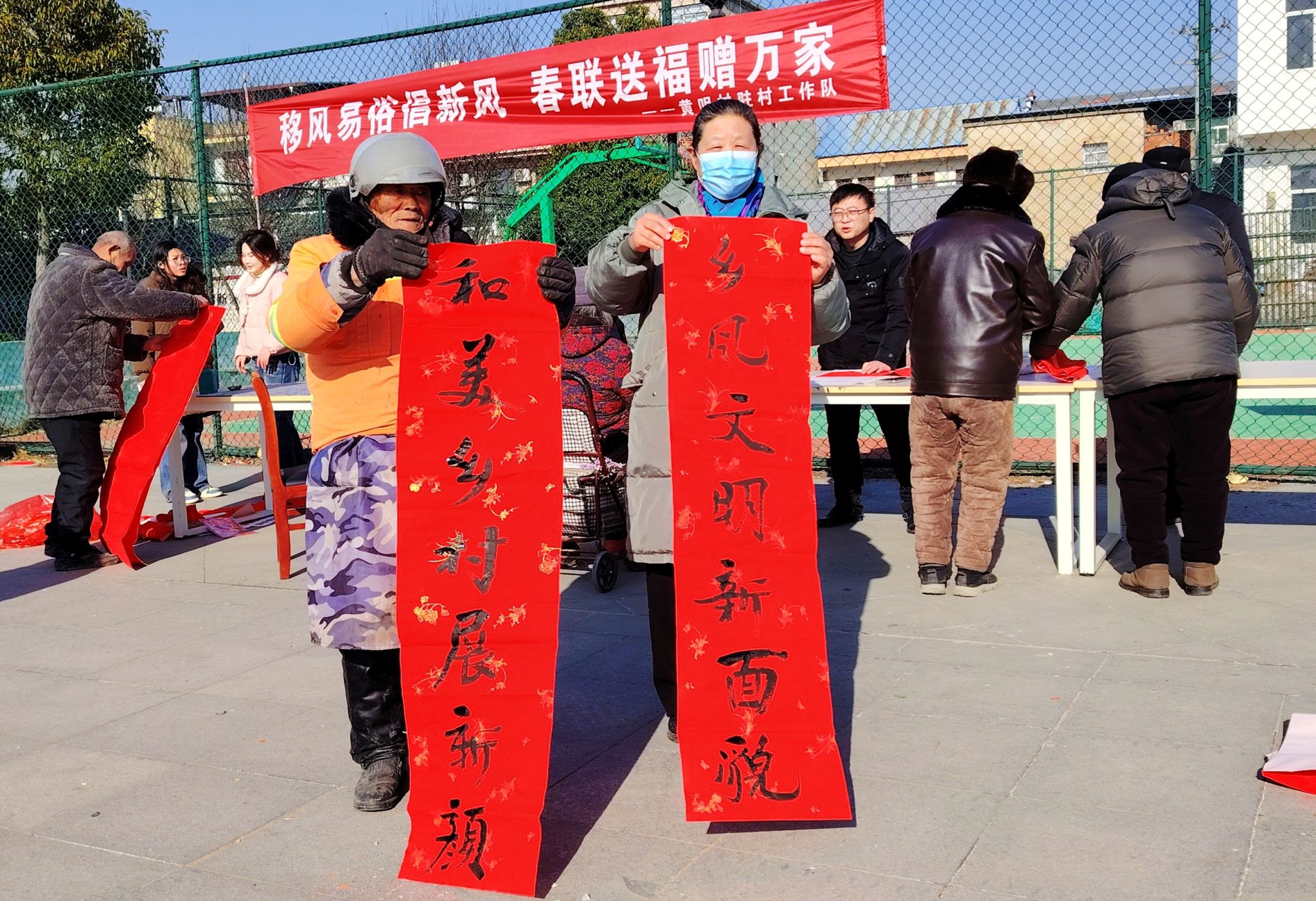 “乡风文明新面貌,和美乡村展新颜”“生态画轴频引凤,乡村宝地好腾龙”“良好家风福满园,文明乡风润心田”等一幅幅现场撰写的春联,充分表达了基层干部全面推进乡村振兴,加快农业农村现代化建设的坚强决心和毅力勇气,让乡风文明理念飞入了寻常百姓家,现场群众争先恐后拿着余墨未干的春联,个个赞不绝口,脸上洋溢着发自内心的喜悦和满足。