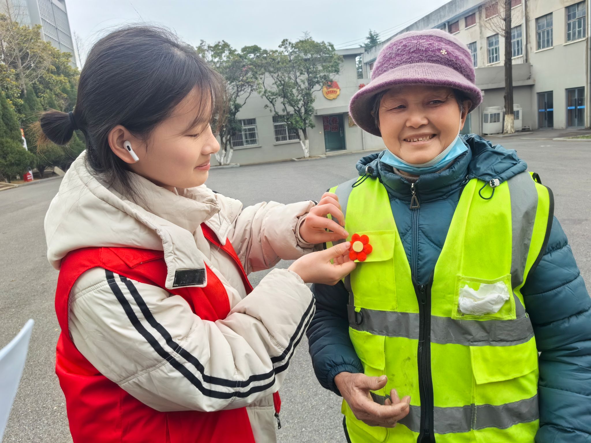 校青年志愿者协会的同学们精心准备了手工制作的小红花,他们带着满满的敬意,找到了校园内的保安叔叔、环卫工人、宿管阿姨,将这些小红花一一递到他们手中,向他们表达了深深的感激与敬意。“谢谢你们,是你们的辛苦付出,才有了我们舒适、整洁的校园环境。”在这一刻,来自学生的感谢让他们感受到了温暖与尊重。