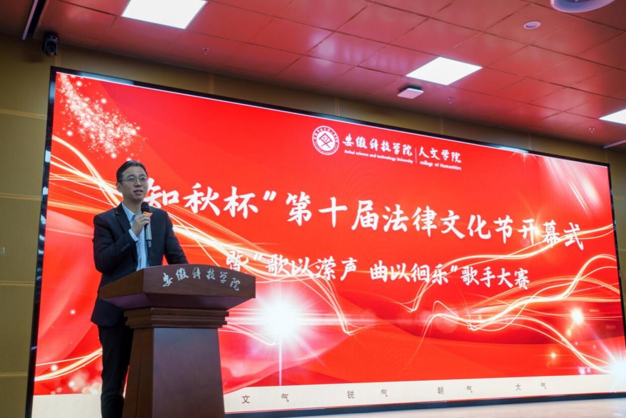 为大力弘扬法治精神,培育大学生法治观念,丰富校园文化生活,展现青春学子的时代面貌,3月15日下午,人文学院在图书馆二楼报告厅举办“知秋杯”第十届法律文化节开幕式暨“歌以潆声,曲以徊乐”歌手大赛。安徽知秋律师事务所主任、首席合伙人宫鉴,执行主任、高级合伙人耿晓兵,滁州市南谯区团委书记徐迟,人文学院党政领导、教师和辅导员代表出席开幕式。