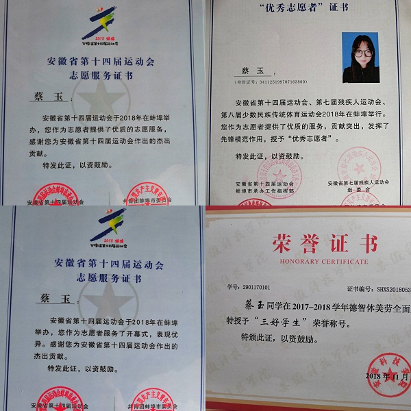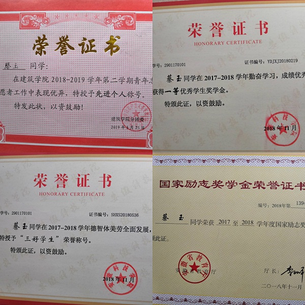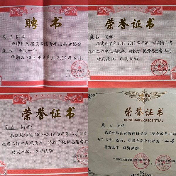 最后,在谈及对学弟学妹们学习建议时,蔡玉说:“好好学习,做好学生本分。积极参加社会实践,巩固专业知识。踏实肯干,保持初心。”