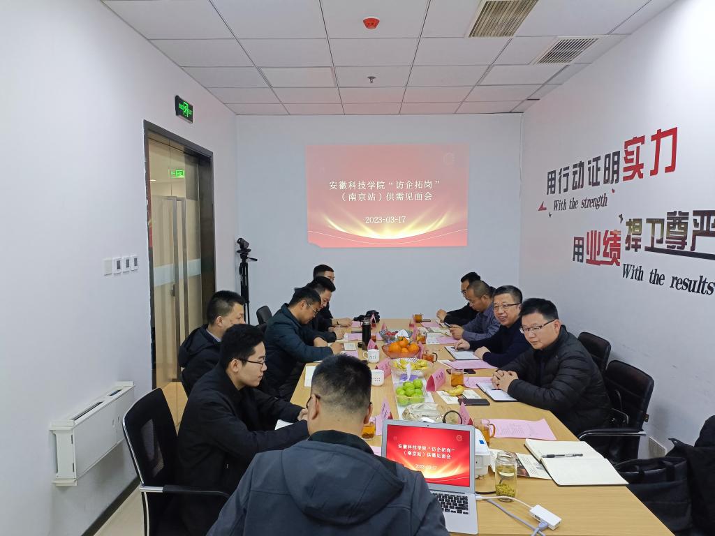 熊传兵首先对供需见面会的成功召开表示祝贺,对何世潮一行的到来表示热烈欢迎。何世潮对此表示感谢,介绍了本次“访企拓岗”供需见面会召开的目的,同时介绍了半岛官方网站_半岛(中国)股份有限公司,办学历史沿革、毕业生“四能人才”特色亮点、2023届全校毕业生的分布等简况。随后南京瑞美福农业科技发展有限公司副总经理熊传兵、南京诺唯赞生物科技股份有限公司人事经理陈雨、南京特斯特检测技术有限公司总经理兼董事长王海、安徽留香阁食品有限公司总经理潘振杰、南京野蔷薇农业科技发展有限公司总经理高升、江苏汉伟斯特生态农业有限公司财务总监崔阳等六家用人单位代表依次介绍了本企业发展现状及人才需求等情况。