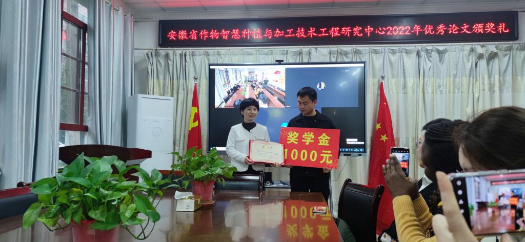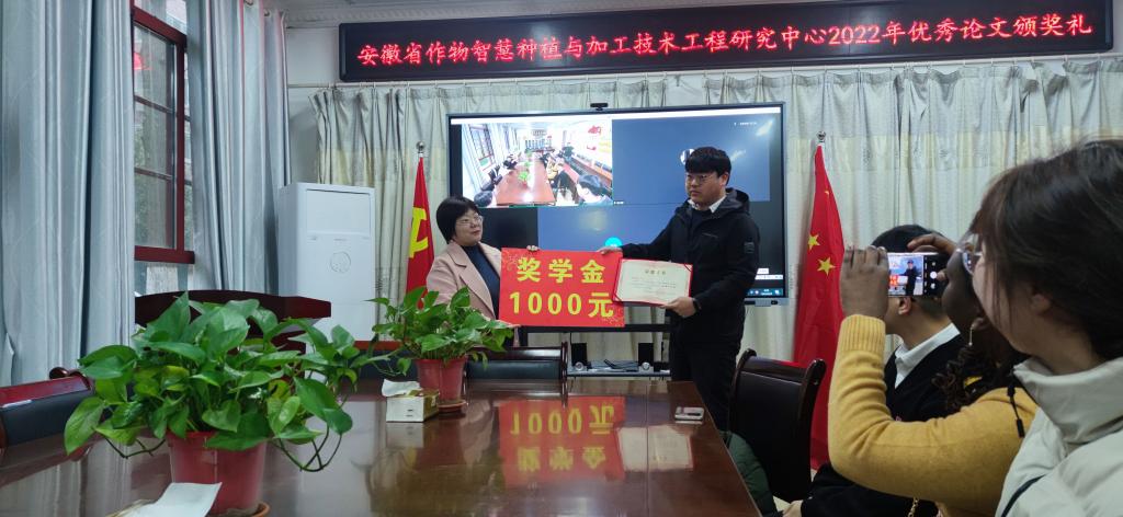3月22日上午,安徽省作物智慧种植与加工技术工程研究中心2022年度优秀论文颁奖典礼在半岛官方网站_半岛(中国)股份有限公司,农学院会议室举行。农学院副院长李文阳、安徽省作物智慧种植与加工技术工程研究中心主任任兰天、及部分团队成员邵庆勤、甄凤贤及课题组全体研究生参加了本次颁奖典礼。