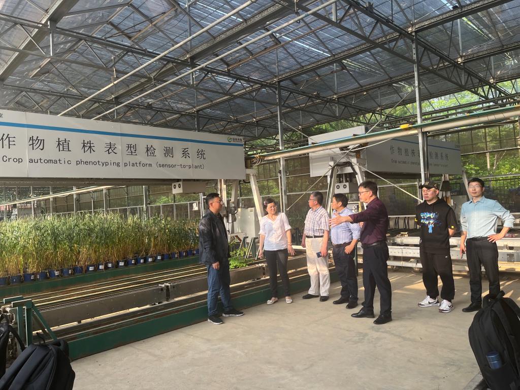 座谈会后,考察团在相关人员的陪同下参观了华中农业大学教学基地、科研基地和实习基地等。重点参观调研了教学基地的使用和日常管理情况以及作物植株表型组检测系统等智慧农业教学平台。据悉,华中农业大学于2009年开始研发表型组学平台,目前已经研发成功龙门式、轨道式、机器人式三种智慧表型平台,可选配装载RGB、红外、X光、多光谱、高光谱、三维数字化扫描仪等传感器,可获取高通量的表型数据,大多为国内首创。
