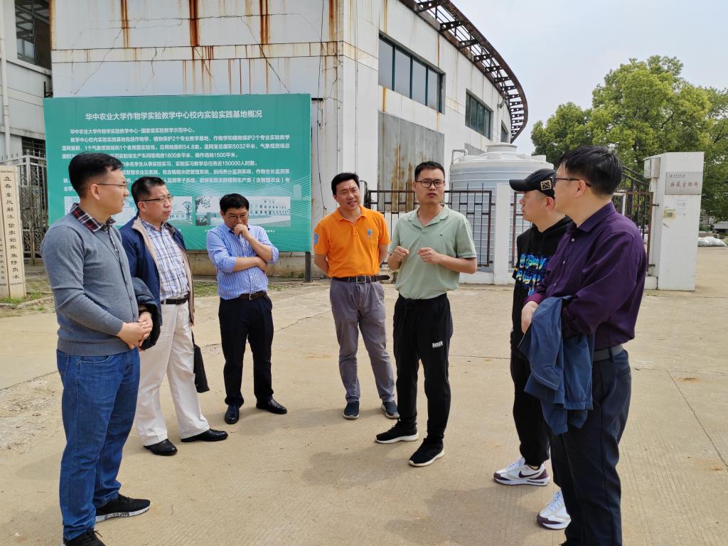 为加快传统农科专业改造升级,推进智慧农业等新专业的建设,筹备生物育种科学专业的申报,优化实习实训基地的建设和管理等工作,4月20日,农学院党委书记何世潮、副院长舒英杰、农学系主任兼智慧农业专业负责人任兰天、生物育种科学专业(筹)负责人黄先忠、现代农业实习实训中心主任郑甲成、农学院教师赵合明一行6人赴华中农业大学植物科学技术学院开展调研和考察。何世潮一行受到了华中农业大学植物科学技术学院院长朱龙付、副院长罗朝喜、种子科学与工程专业负责人余四斌、智慧农业专业负责人李林等的热情接待。