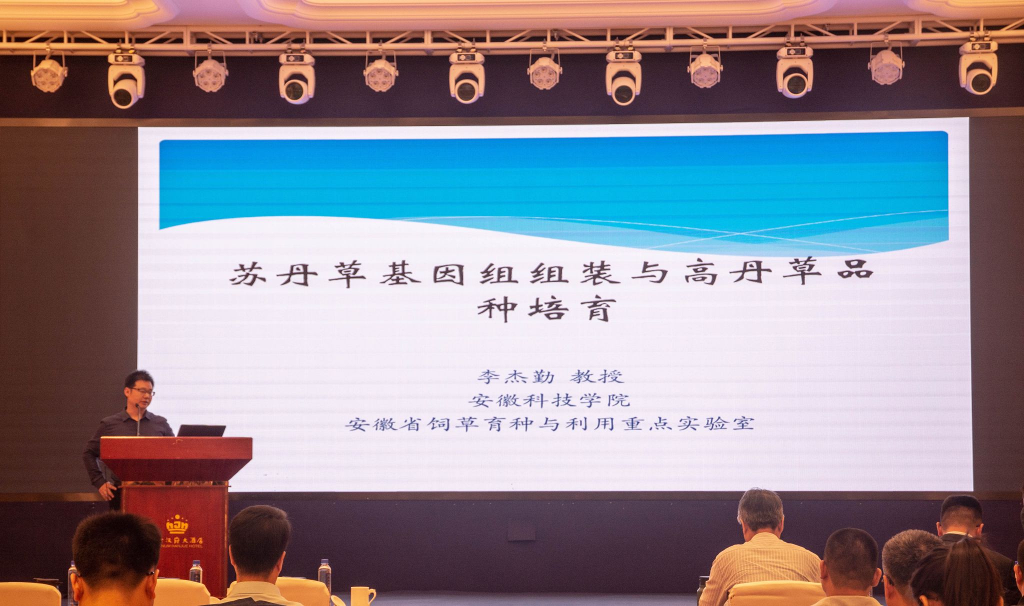 大会安排了13个大会主题报告,14场分会报告。与会人员围绕“新形势下我国饲草产业发展机遇、挑战及高效创新模式探讨”、“草业科技前沿技术的创新与应用”、“人工智能下的草坪科学与管理”、“草种质创制与草品种培育”、“草种质资源研究与创新利用”、“草产品高质量加工的理论、技术与方法”、“草地资源保护及其可持续利用”、“草地农业生态系统健康与高效管理”、“高水平保护与高质量发展下的草地管理”、“国际草原和牧民年”、“草原生态系统与全球变化”等议题分别展开研讨,旨在展示我国草学研究的最新成果和进展。我校饲草育种与利用团队教师詹秋文教授、李杰勤教授和郑甲成副教授携5名研究生参加会议。李杰勤作了题目为“苏丹草基因组组装及高丹草品种培育”的学术报告,会场反响强烈。