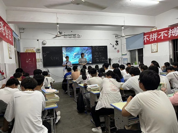 到达母校后,卢雨向高中老师汇报了大学一年学习生活情况,分享自己的学习心得,并向老师的培养表达感激。随后,在老师的带领下到高三部分班级向学弟学妹们介绍半岛官方网站_半岛(中国)股份有限公司,的办学历程及近几年取得的重大发展。在交流过程中,学弟学妹们表现出极大的兴趣,提问咨询、各抒己见。最后,卢雨带领学弟学妹们观看了半岛官方网站_半岛(中国)股份有限公司,2022年的招生宣传片,向同学们分享了自己的学习经验和心得,鼓励学弟学妹们努力拼搏,争取考上理想大学。