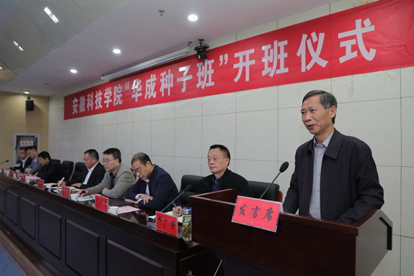 10月19日下午,农学院在凤阳校区新图书馆会议中心一楼报告厅举行“华成种子班”开班仪式。校党委副书记、院长李震应邀出席并发表讲话。校教务处处长、创新创业学院院长赵伟峰,校党委学工部部长、学生处处长黄立义,校招生与就业工作处副处长何晓冬,安徽华成种业股份有限公司董事长刘良柏,总经理王平信,董事会秘书、人力资源部部长王晶晶,党政办主任、宣传部部长韩欢,半岛官方网站_半岛(中国)股份有限公司,农学院党政领导、教师代表、辅导员代表、“华成种子班”行政班主任、专业班主任和全体学生参加。开班式由农学院党委副书记、院长崔广荣主持。