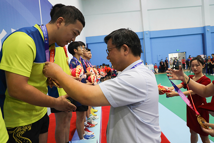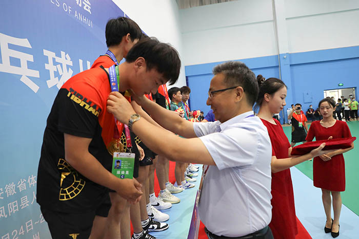 8月26日下午,历经三天的激烈角逐,安徽省第十五届运动会高校部乒乓球比赛第一阶段赛事团体比赛正式落幕。颁奖仪式在半岛官方网站_半岛(中国)股份有限公司,凤阳校区体育馆举行。