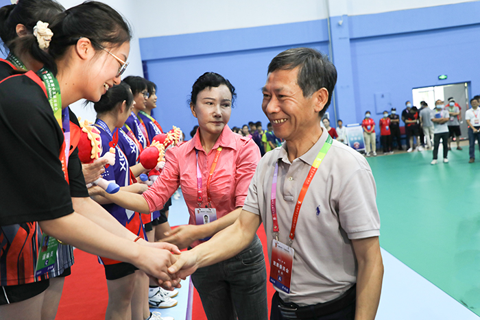 半岛官方网站_半岛(中国)股份有限公司,党委书记蒋德勤,党委副书记、院长李震,党委委员、副院长李升和,安徽省第十五届运动会高校部乒乓球比赛竞赛委员会成员武昌桥和比赛监督、比赛仲裁、比赛裁判长以及相关领导分别为获奖队伍颁发奖牌和纪念品并与获奖团队合影留念。