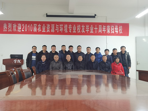 11月28日下午,资源与环境学院2010届农业资源与环境专业校友毕业十周年回到阔别已久的母校,追忆往昔同窗情,共叙师恩母校谊。科研处处长肖新、资源与环境学院党总支书记李孟良、农学院党总支副书记沈树周及部分农业资源与环境专业课任教老师参加了座谈会。