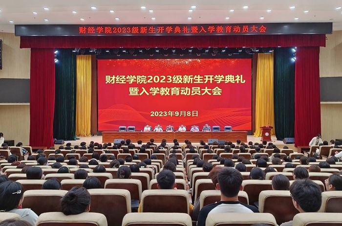 9月8日晚上,财经学院2023级新生开学典礼暨入学教育动员大会在龙湖校区综合信息中心二楼报告厅举行。学院党委书记杜小明,党委副书记、院长郝世绵,学院党委副书记、纪委书记耿广汉,副院长李宝礼,工会主席陈继东,各系室主任,全体辅导员及2023级全体新生参加典礼。开学典礼由耿广汉主持。