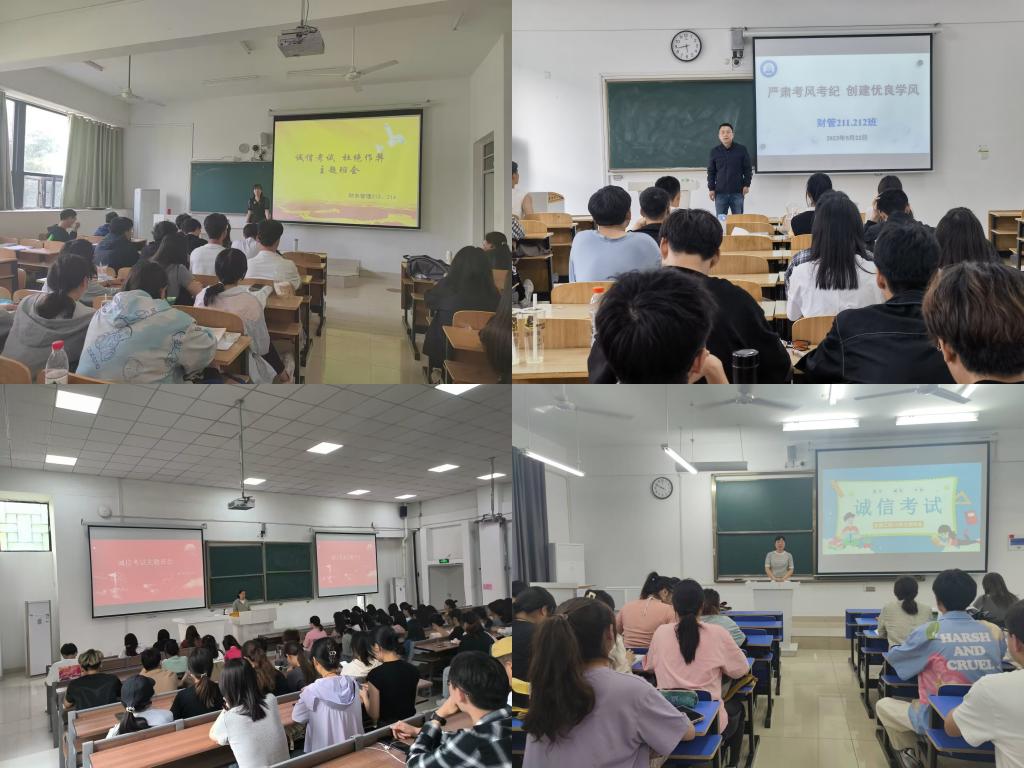 为加强学生诚信文明教育,进一步加强考风考纪教育,树立优良学风,在期末考试即将来临之际,财经学院各班级召开了诚信考试主题班会。