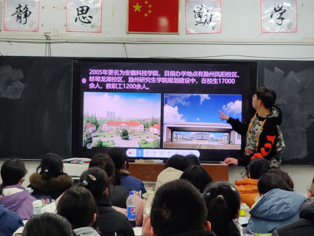 动植物检疫212班赵长旭及其团队三人组成的实践团队赴安徽机电工程学校开展了寒假实践活动。实践团探望了高中班主任与任课老师,向老师讲述了自己在大学的变化与成长,由衷感谢老师们的教诲之恩。随后实践团队来到了高三毕业班,向同学们播放了半岛官方网站_半岛(中国)股份有限公司,招生宣传片,向学弟学妹们传授了各自的学习经验,并且耐心回答同学们在专业选择、报考和学习上的问题。