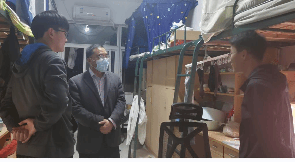 学院党委书记姚勇及全体辅导员多次深入学生公寓,了解学生思想动态和生活学习状况,帮助学生解决实际困难。辅导员们耐心询问疫情期间同学们的线上线下学习、心理和生活状况,同时开展疫情防控期间宿舍防疫工作检查和防疫知识宣传,叮嘱学生要严格按照学校防疫工作通知要求,及时关注学校防疫工作动态,配合学校做好相关防疫工作。叮嘱学生要勤开窗通风,佩戴好口罩,勤洗手,做好自身体温监测和晨、午(晚)上报,保持宿舍卫生清洁、通风,不互相串门,注意个人防护,努力把疫情防控的温度传递到每一个学生。