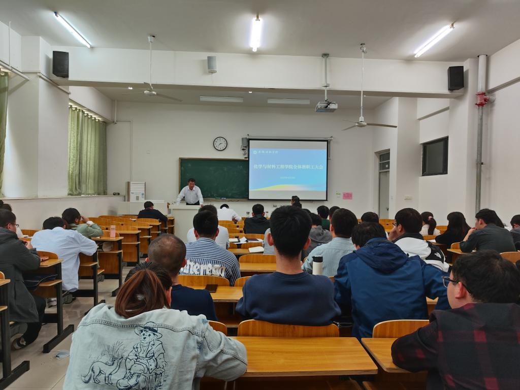 4月19日,化学与材料工程学院在致知楼B107教室召开全体教职工大会。会议由学院党委书记黄树桥主持,全体教职工参会。