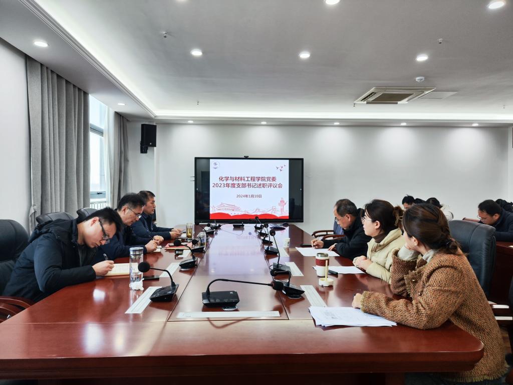 为推动全面从严治党向基层延伸,增强党支部书记履职能力,1月10日,化学与材料工程学院党委在西辅楼317会议室召开了2023年度党支部书记抓党建述职评议考核会议。会议由学院党委书记黄树桥主持,学院党委委员、党支部书记、支部委员及师生代表参加了会议。