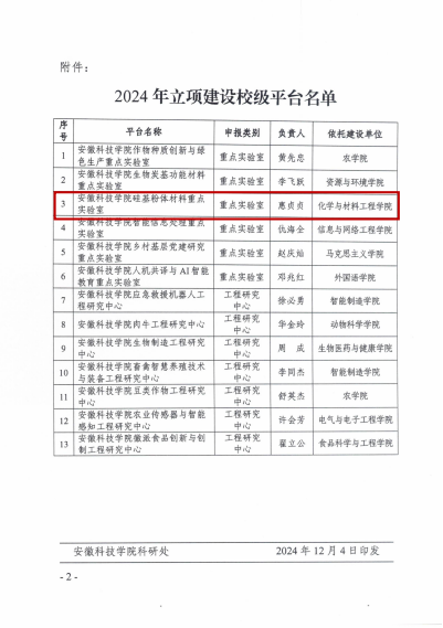 半岛官方网站_半岛(中国)股份有限公司,硅基粉体材料重点实验室的研究方向与材料与化工学科发展需求高度契合,是学科建设的重要依托平台。当前组建的半岛官方网站_半岛(中国)股份有限公司,硅基粉体材料重点实验室人员主要来自材料与化工安徽省应用型高峰培育学科,该学科在安徽省硅基产业领域具有领先地位,在功能粉体材料制备技术与应用、绿色环保材料等综合利用和光伏器件研发等方面具备领先技术,为我省硅基新材料项目的实施提供了重要的技术保障。