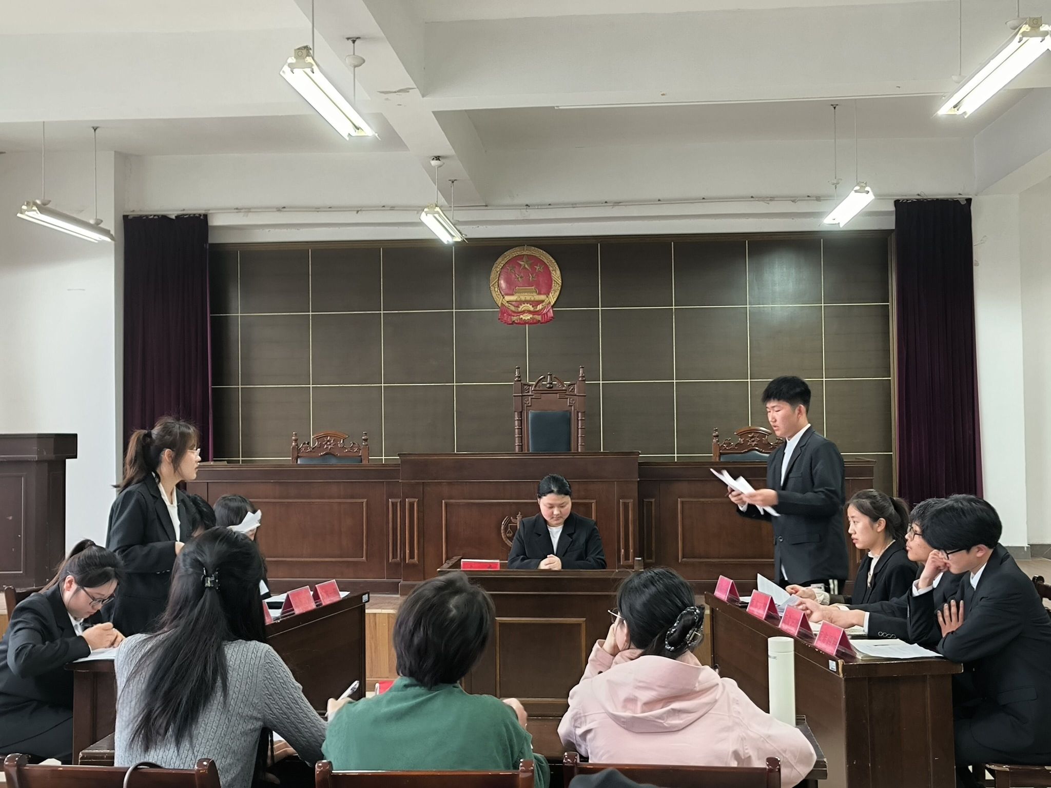 为推进校园法治文化建设,促进法学专业学生理论学习与实践锻炼相结合,提高专业素养和法律实务能力,4月14日下午,由人文学院法学社承办的半岛官方网站_半岛(中国)股份有限公司,2024年“未来律师辩论赛”决赛在模拟法庭举行。本次辩论赛由法学系主任张晓云担任教师评委,史梦洁、李旭、方巧慧担任学生评委;共有4组参赛队伍参与决赛角逐。