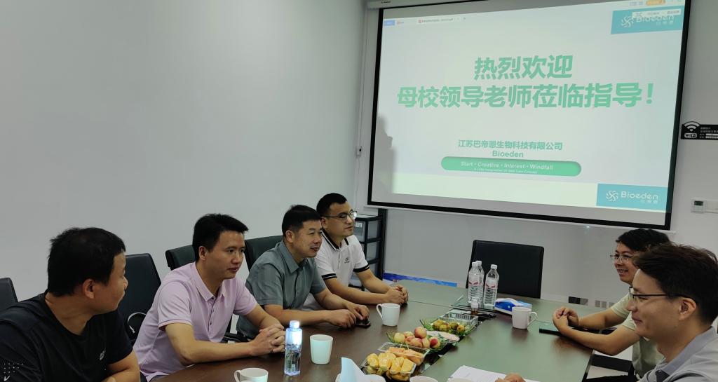 在江苏巴帝恩生物科技有限公司,詹学文一行受到公司副总经理、学院校友陈秀玉热情接待,参观了公司生产研发实验室、办公场所等。座谈会上,陈秀玉详细介绍了公司创建过程、运行状况、主营产品和发展思路,詹学文一行介绍了学校和学院的发展变化情况。双方围绕产学研合作、人才培养、学生实习就业等内容进行了深入探讨和交流,并达成了初步合作意向。(特约通讯员:王传林 摄影:王传林 审核:詹学文)