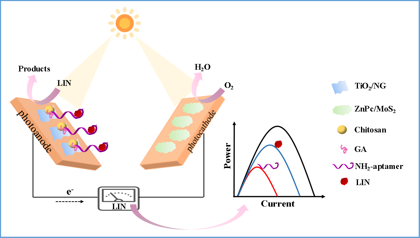 文作瑞博士通过共溶剂法成功制备了光阴极ZnPc/MoS2纳米复合材料,并且与光阳极TiO2/NG组建了一种可见光驱动的无膜型双光电极传感平台。通过与LIN适配体的结合,将目标分子LIN被捕获,然后被光阳极空穴氧化,从而引起功率密度的增强。该传感器成功应用于牛奶和鸡肉样本的LIN检测,同时为更合理的绿色能源发电设备的设计提供一种新思路。(特约通讯员:程韬 摄影:文作瑞 审核:翟立公)