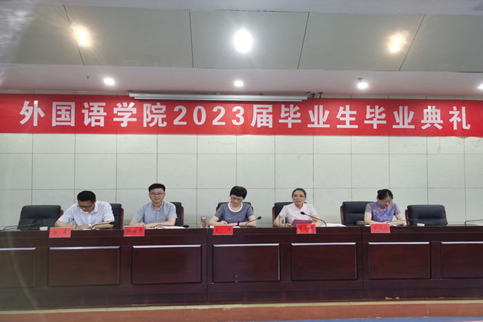 青春启航,梦想飞扬。6月19日下午,外国语学院2023届毕业生毕业典礼在新图书馆一楼报告厅举行。学院党政领导出席毕业典礼。部分师生代表、家长代表和全体毕业生参加典礼。典礼由学院党委书记蔡为青主持。