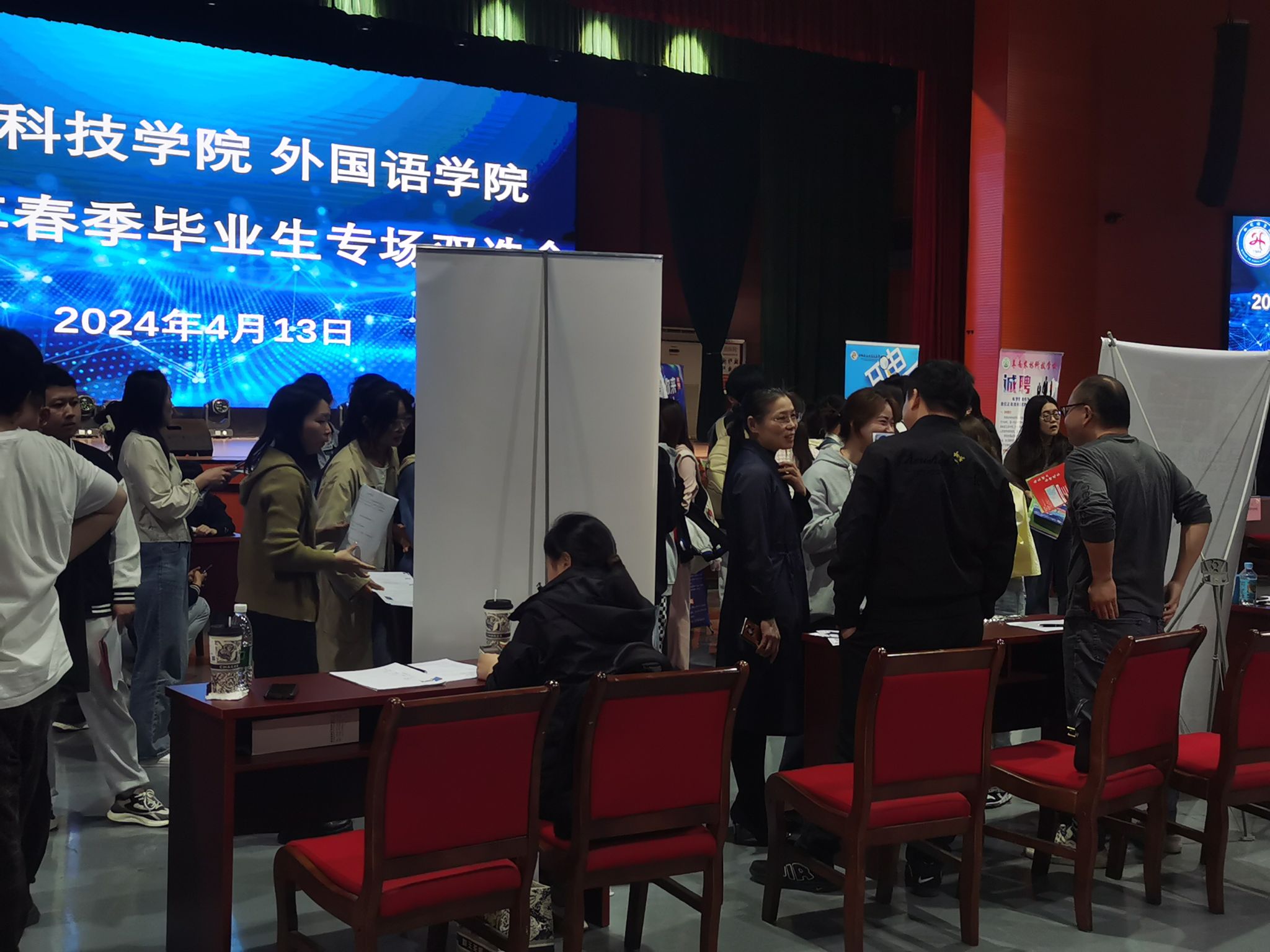 为拓宽2024届毕业生就业渠道,实现毕业生、学院以及用人单位的高效对接,外国语学院于4月13日下午在校大学生活动中心举办2024年春季毕业生专场双选会。