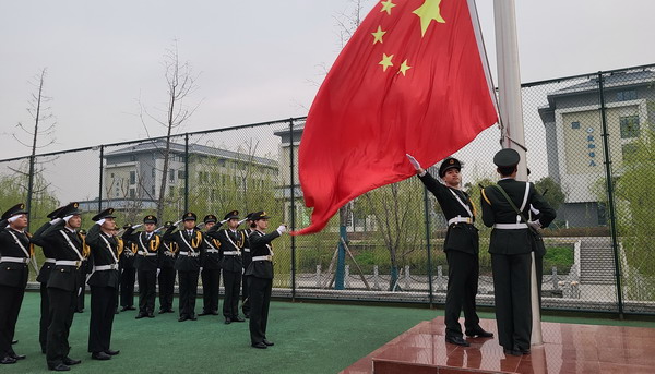 早上6:40,国旗护卫队队员伴着口令,迈着从容稳健的齐步,踏着铿锵有力的正步,伴随着国歌的音律,国旗徐徐升起。国旗护卫队队员们目光坚定,身姿挺拔,展示了国旗护卫队斗志昂扬的精神面貌;参加观礼的师生庄严肃穆,庄严的义勇军进行曲响起,五星红旗迎风飘扬,全体师生唱国歌行注目礼。 升旗仪式后在国旗下举行了经典党史朗诵,校国旗护卫队队员陈良戈声情并茂地朗诵了《百年党史》,带与会师生领略了中国共产党带领人民走向富强的百年奋斗历程,感悟了百年的成就与辉煌。