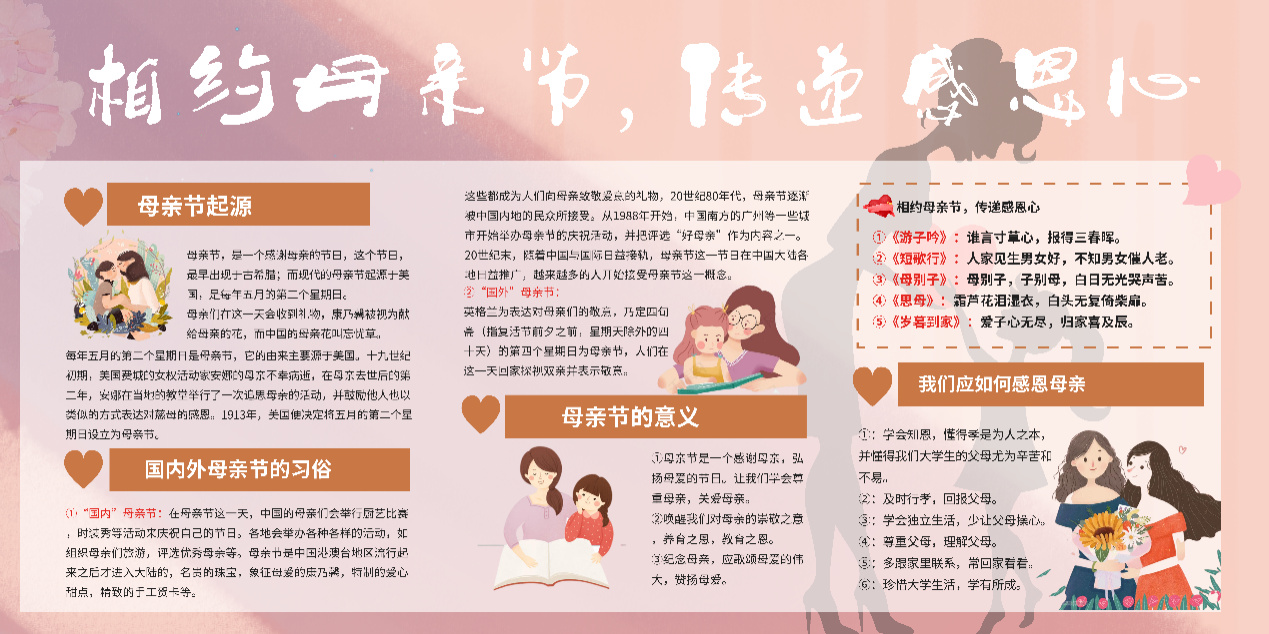 5月9日,信息与网络工程学院心理委员联合协会在食堂前小广场举办了以“感恩母亲”为主题的系列活动。此活动在心联的主办下向全校师生开放,同学们积极参与,并收获满满。信息与网络工程学院心联协会在食堂前面小广场设立宣传海报、展板,让来往的学生在展板上写一句送给母亲的话,炎炎烈日抵挡不了同学们对母亲的爱,展板上写满了同学对母亲的祝福。